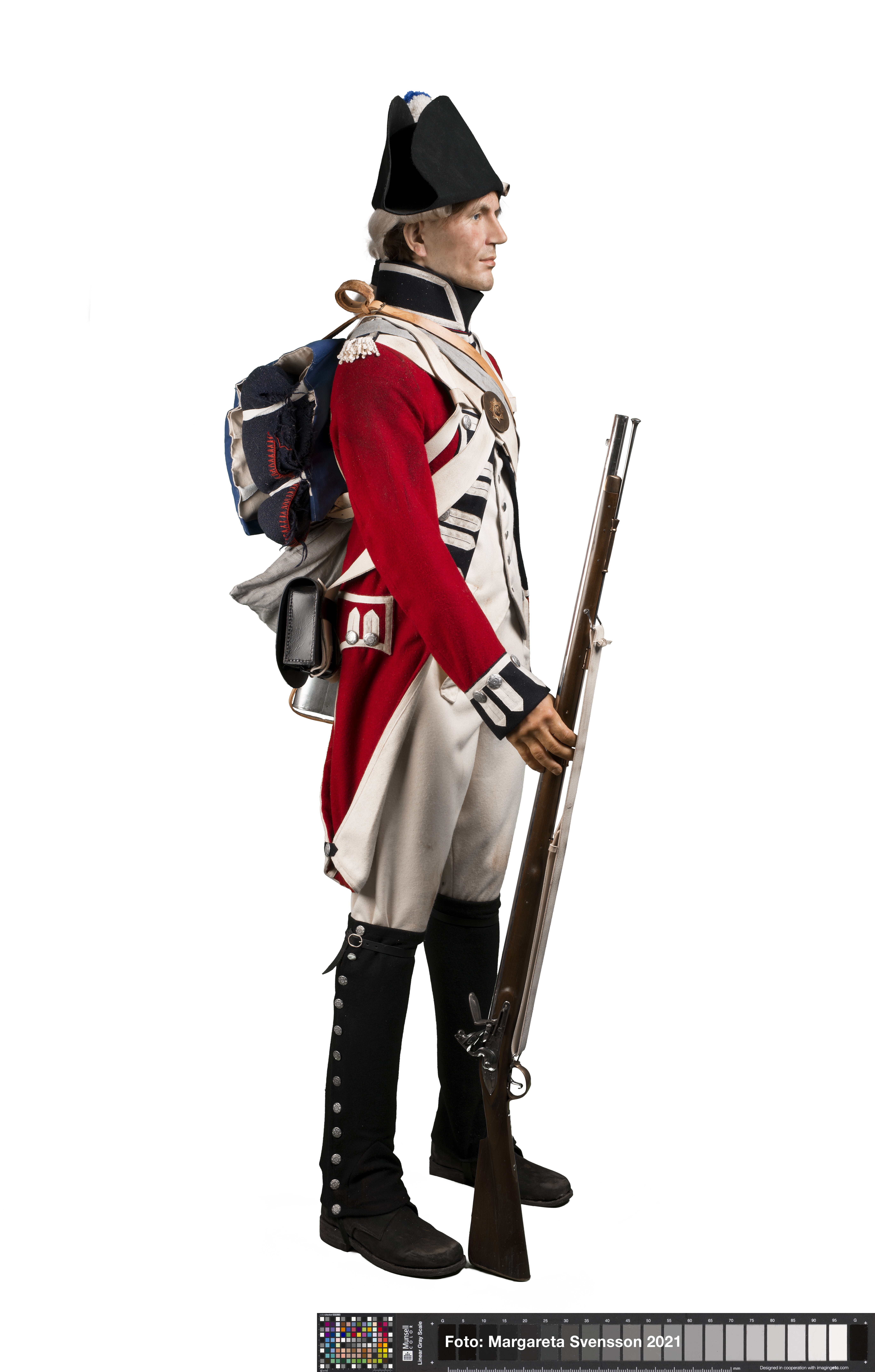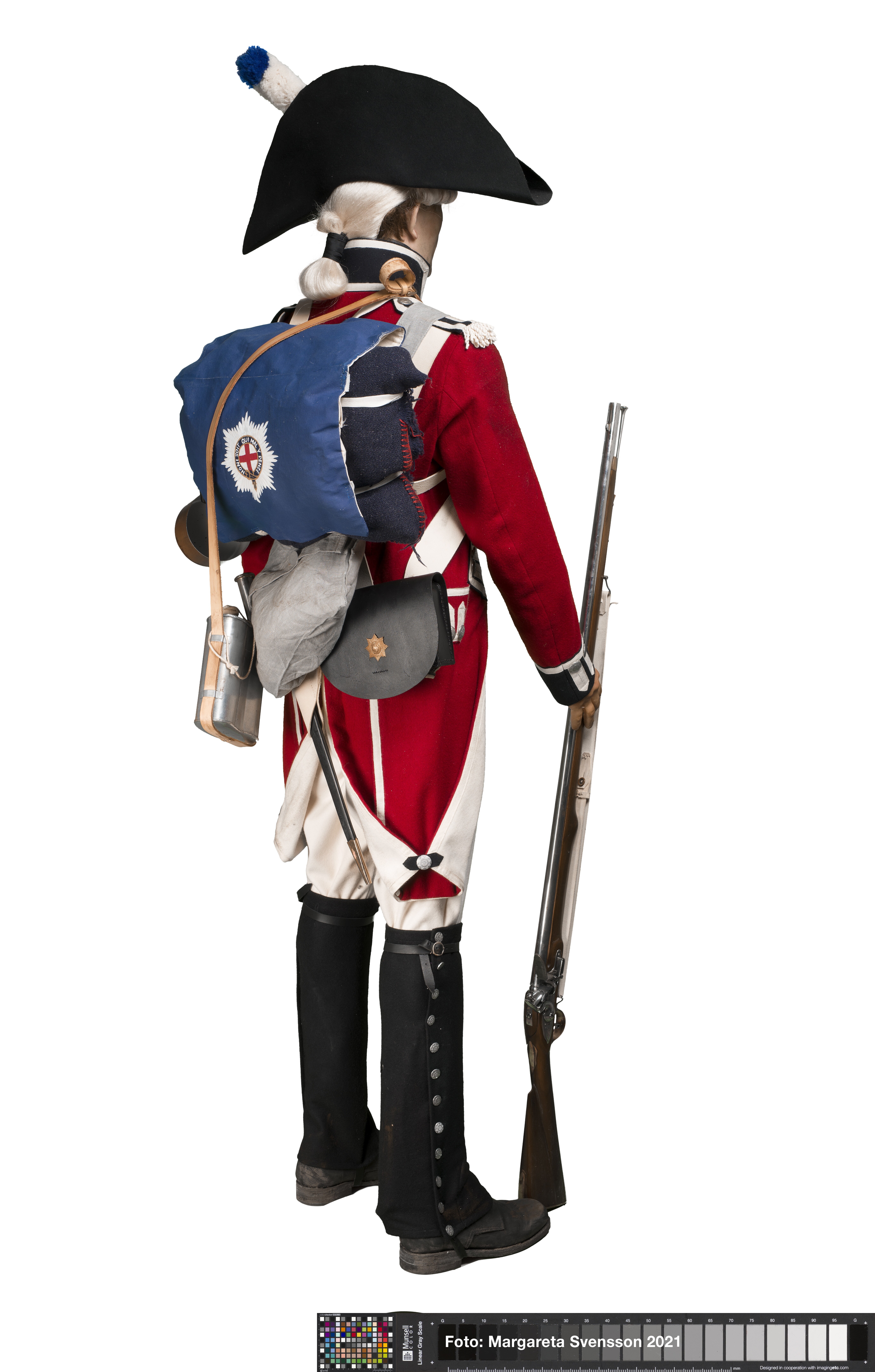Reconstructie van een Britse soldaat uit het regiment Coldstream Guards rond 1799 op basis van afbeeldingen.