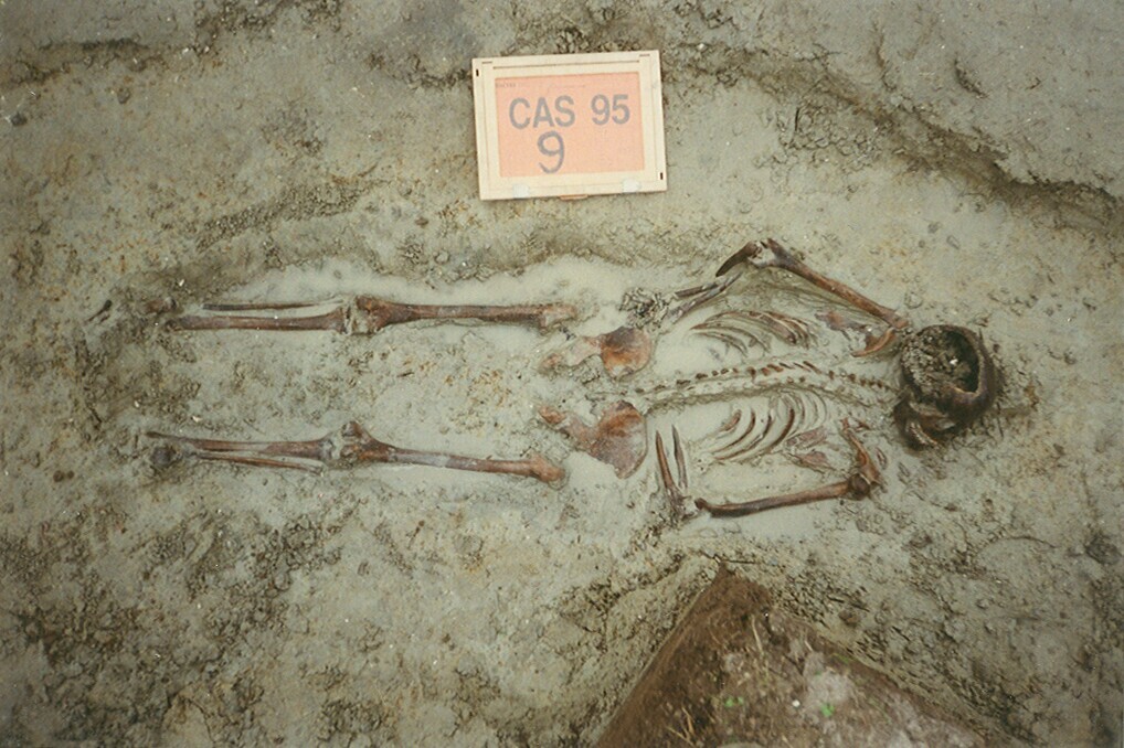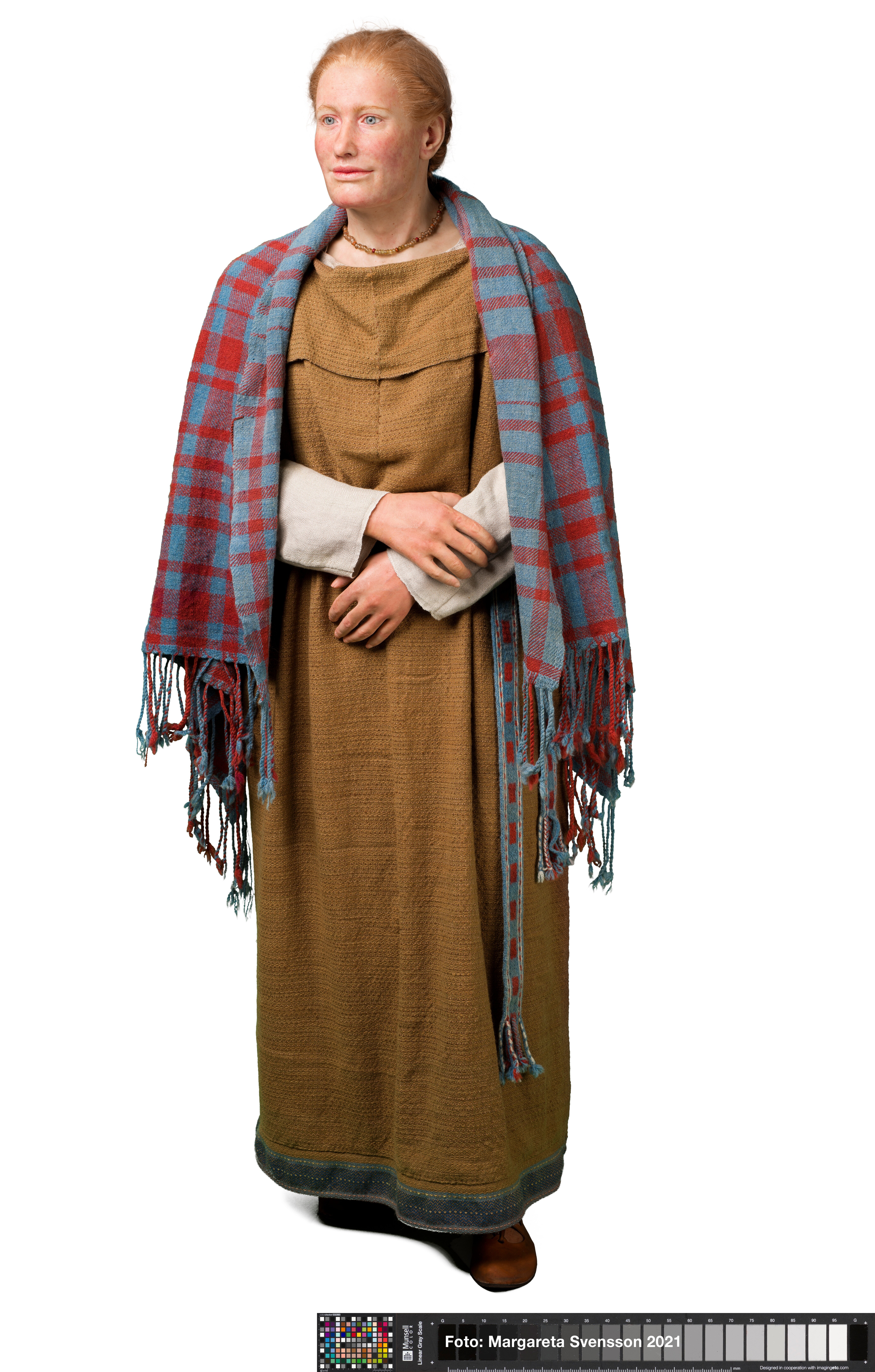 Reconstructie van een Germaanse vrouw, ca 25-30 jaar oud, op basis van het gevonden skelet.