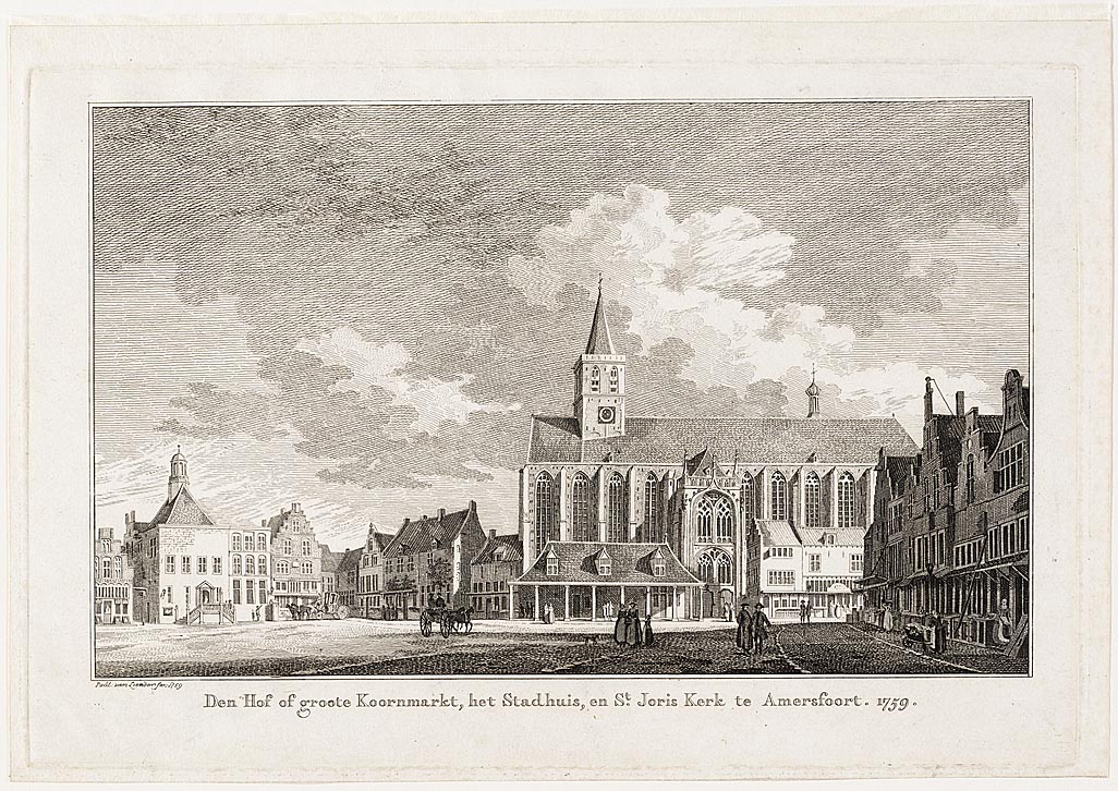 Den Hof of groote koornmarkt, het stadhuis, en St. Joris kerk te Amersfoort. 1759.