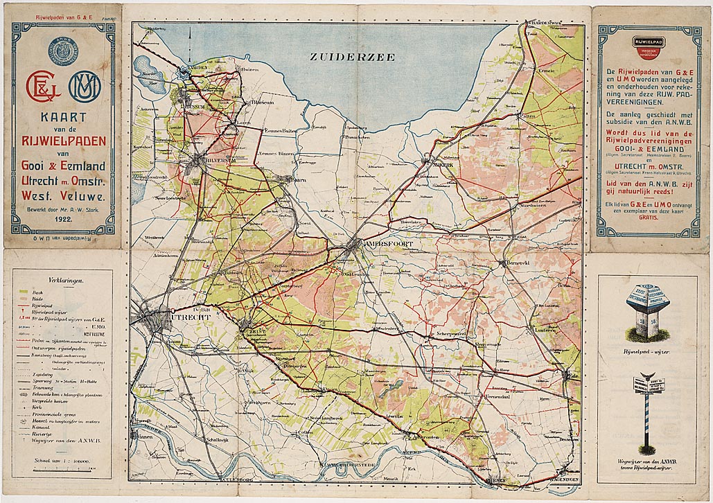 Kaart van de rijwielpaden van Gooi en Eemland, Utrecht, West-Veluwe
