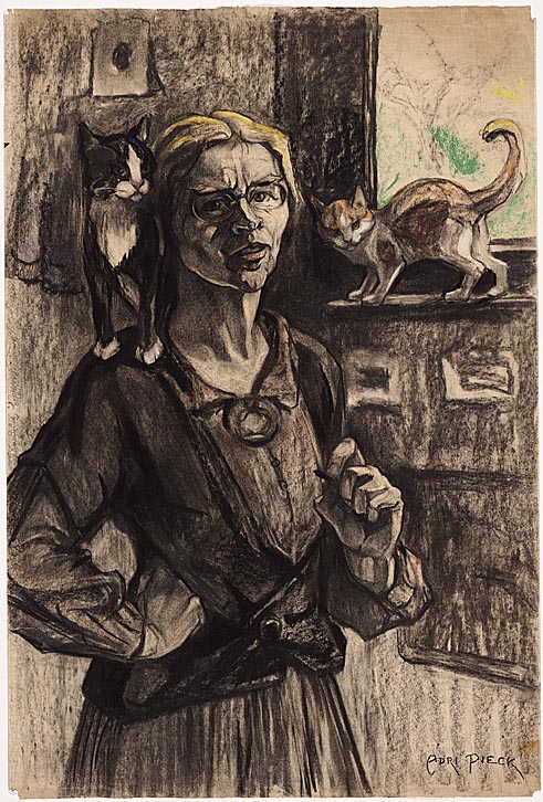 Zelfportret Adri Pieck met twee katten