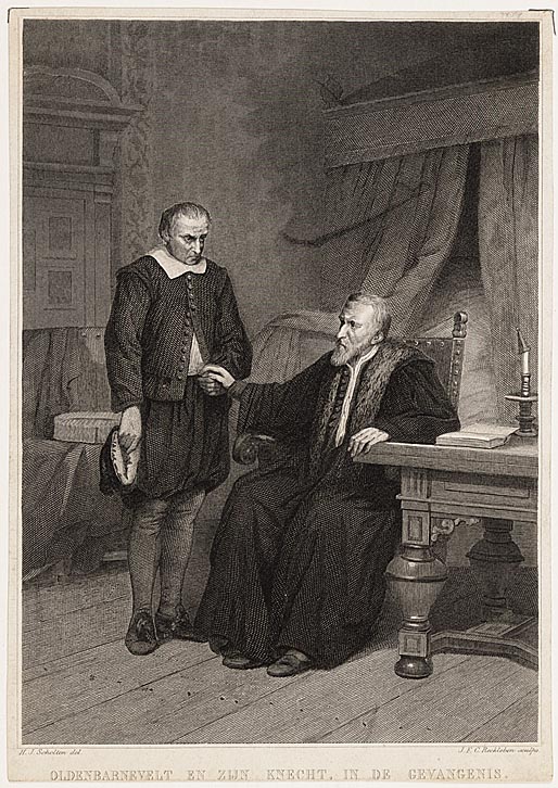 Oldenbarnevelt en zijn knecht in de gevangenis