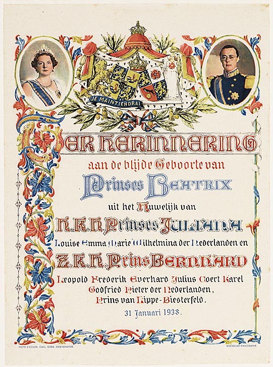 Ter herinnering aan de blijde geboorte van prinses Beatrix ...