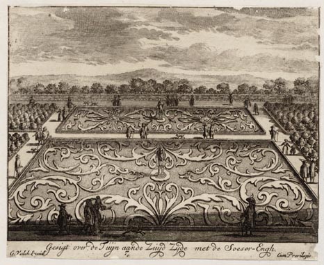 Gesigt over de tuyn aan de zuyd zyde met de Soeser- engh