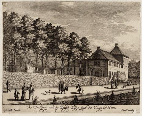 De stallinge aan de zuyd-zyde uyt de tuyn te sien