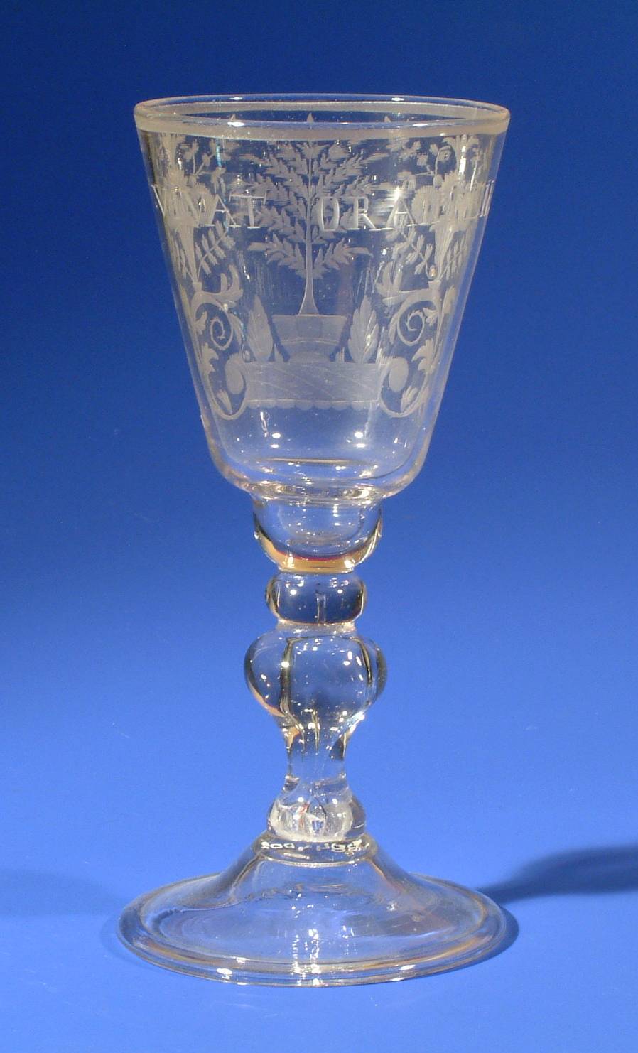 kelkglas met voorstelling van oranjeboom in kuip en tekst VIVAT ORANIEN