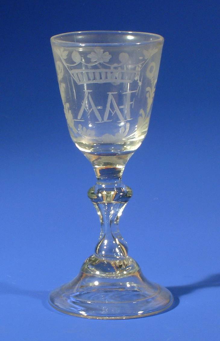 kelkglas gegraveerd met initialen A.A.F. en jaartal 1786