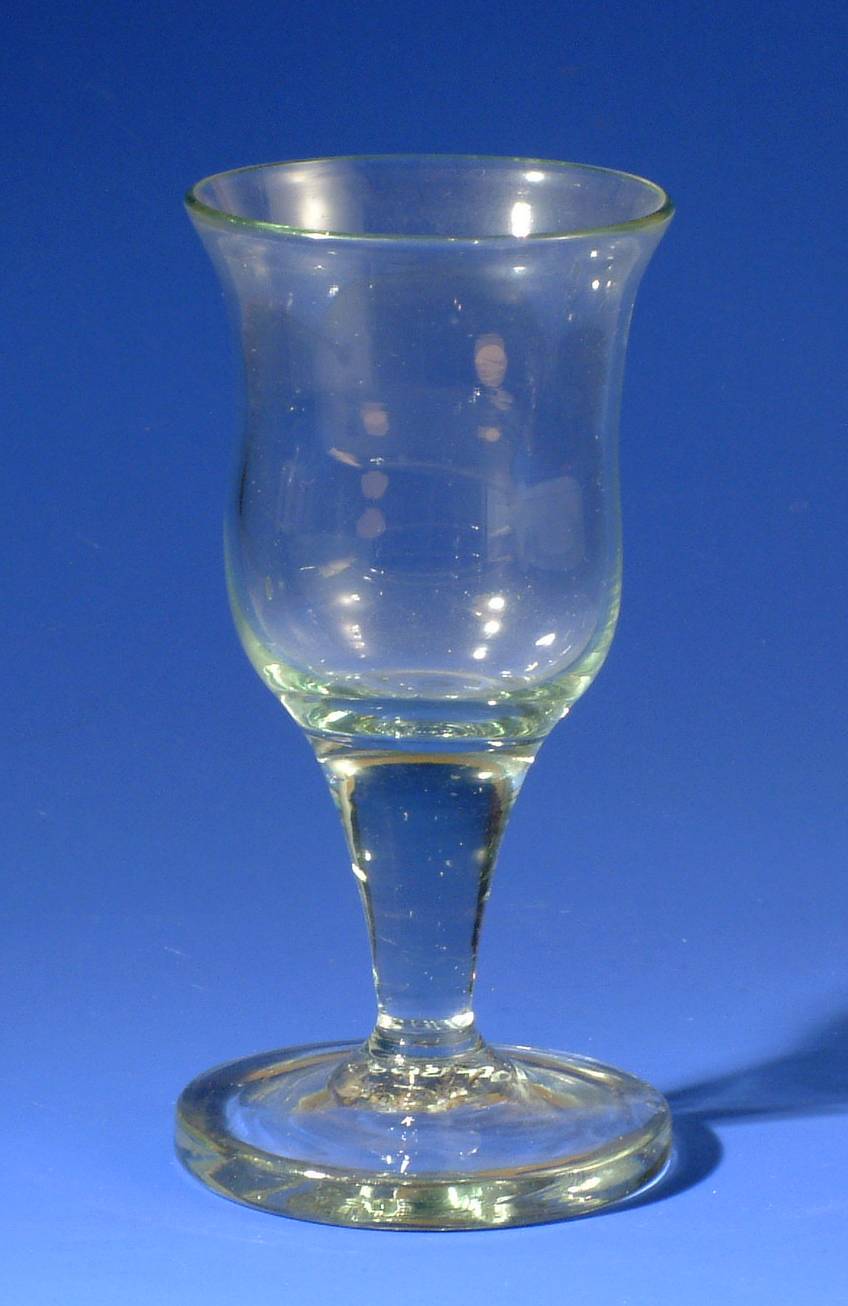 kelkglas met cilindervormige kelk, die geleidelijk overgaat in korte steel