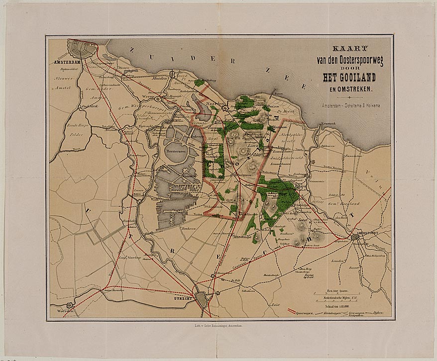 Kaart van den Oosterspoorweg door het Gooiland en omstreken