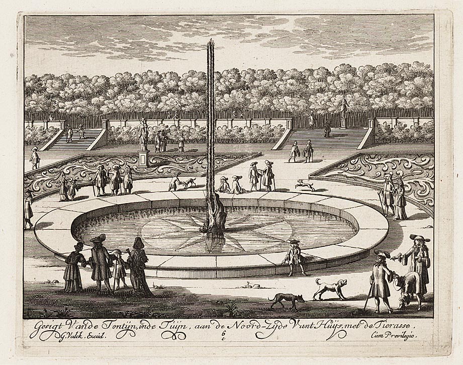 Gesigt van de fontijn in de tuijn, Noordzijde vant huijs met de tierasse.