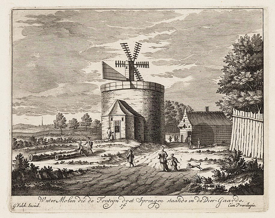 Watermolen die de Fonteyn doet springen, staande in de Diergaarde