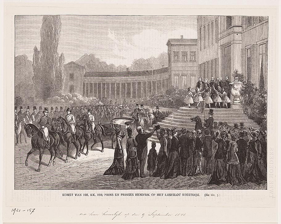 Komst van HH, KK, HH, Prins en Prinses Hendrik op het lustslot Soestdijk, Baarn