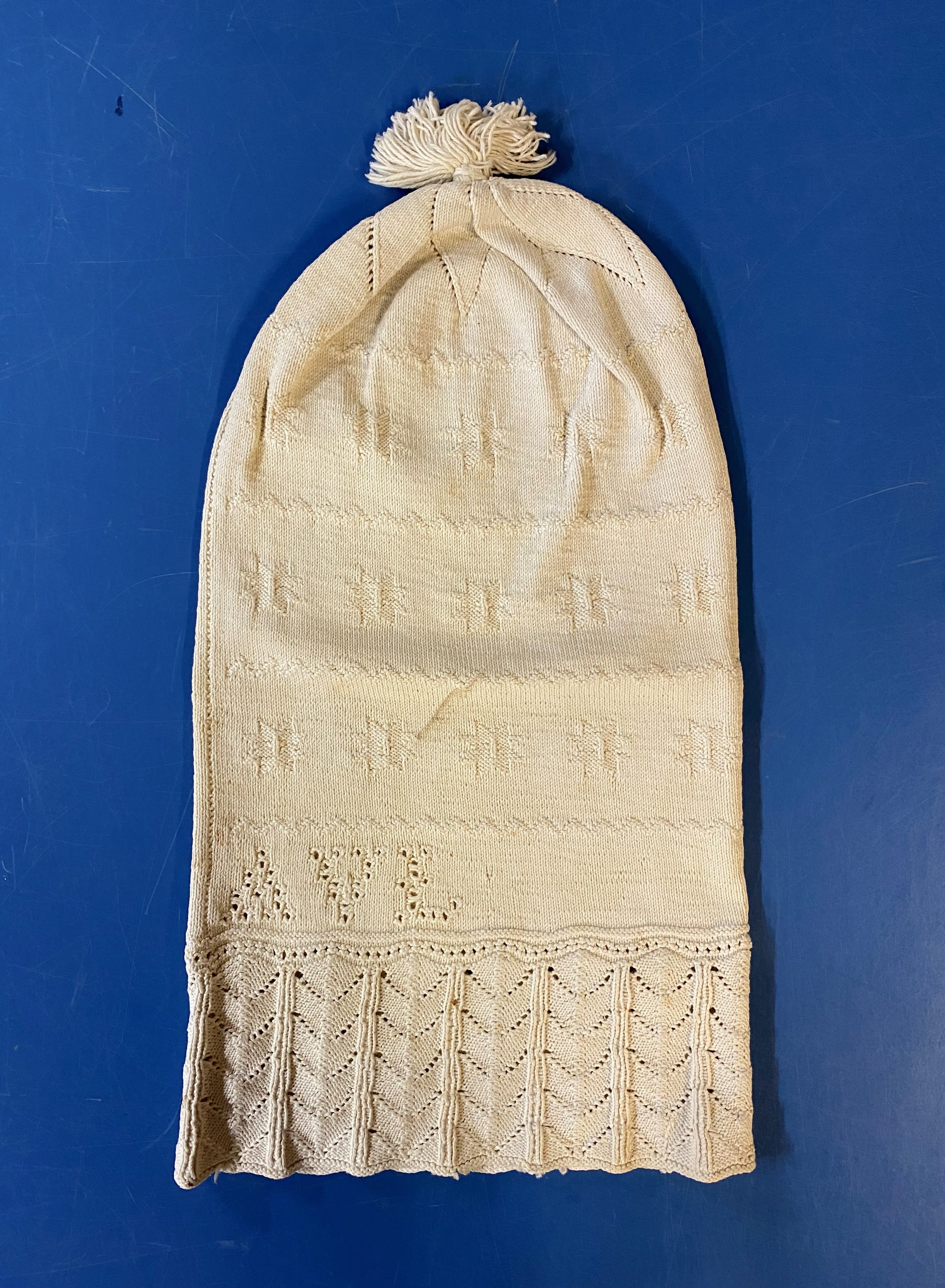 Gebreide heren slaapmuts met pluim