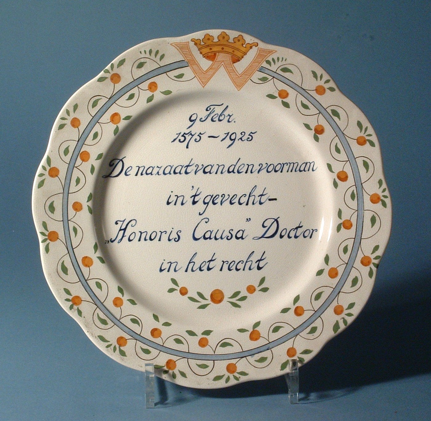 Herinneringsbord ter ere van de uitreiking van het eredoctoraat van Koningin Wilhelmina aan de Rijksuniversiteit Leiden, 1925