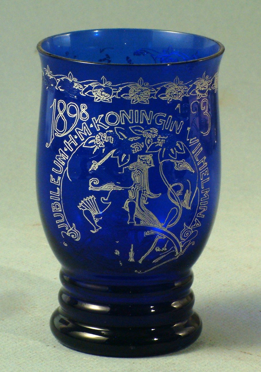 Glazen beker ter gelegenheid van het 25-jarig regeringsjubileum van koningin Wilhelmina, 1898-1923