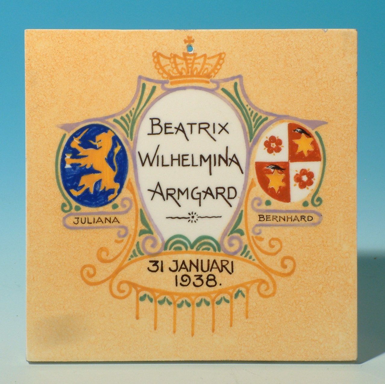 Tegel ter ere van de geboorte van Prinses Beatrix