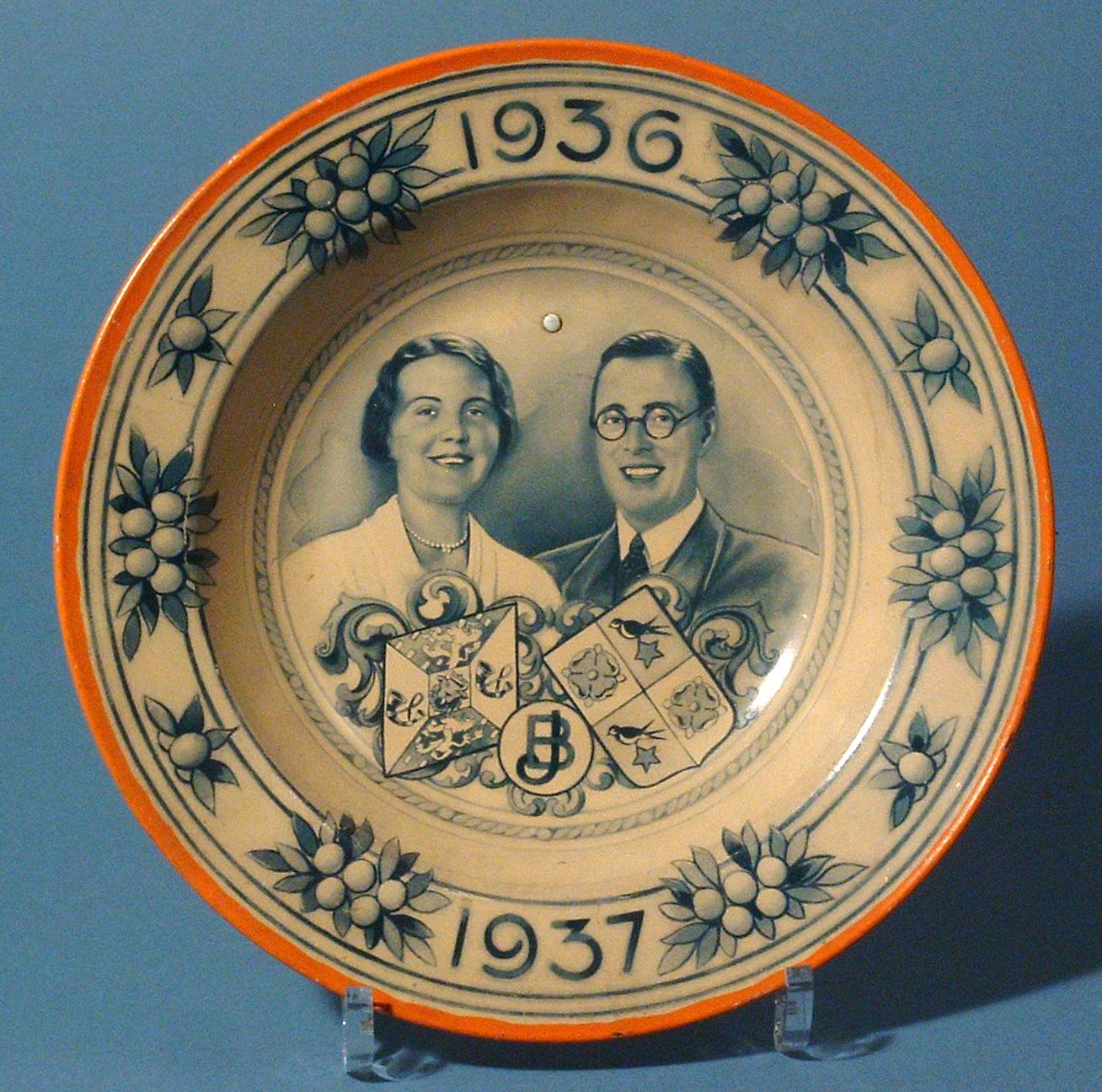 Herinneringsbord ter gelegenheid van de verloving en het huwelijk tussen prinses Juliana en Prins Bernard von Lippe Biesterfeld
