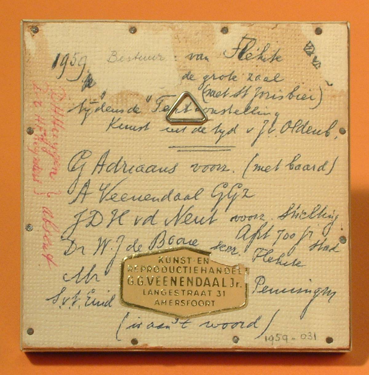 Ingelijste foto van het bestuur van Flehite in eeuwfeestkostuum, 1959