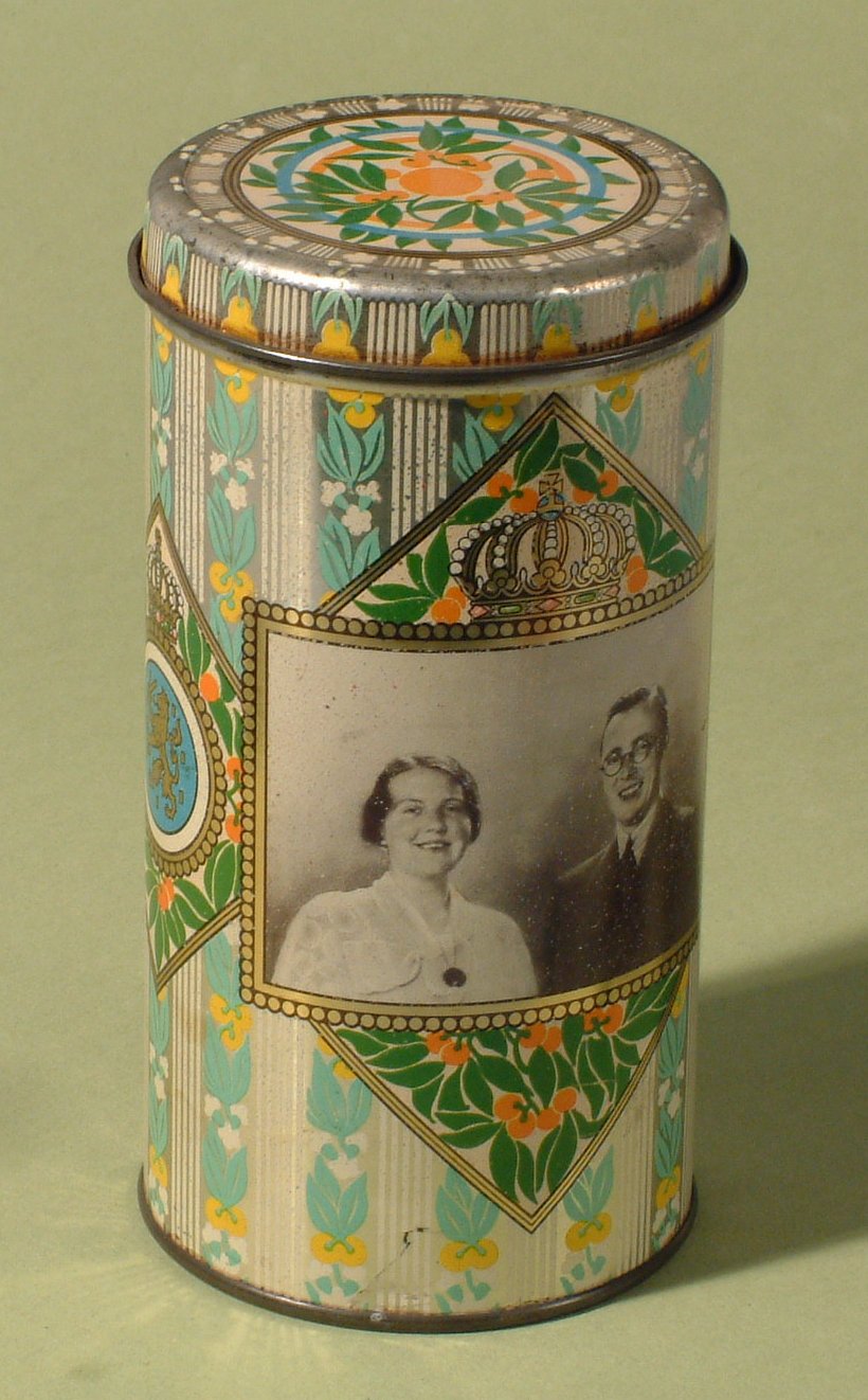Beschuitbus ter herinnering aan huwelijk van Juliana en Bernhard, 7 januari 1937.