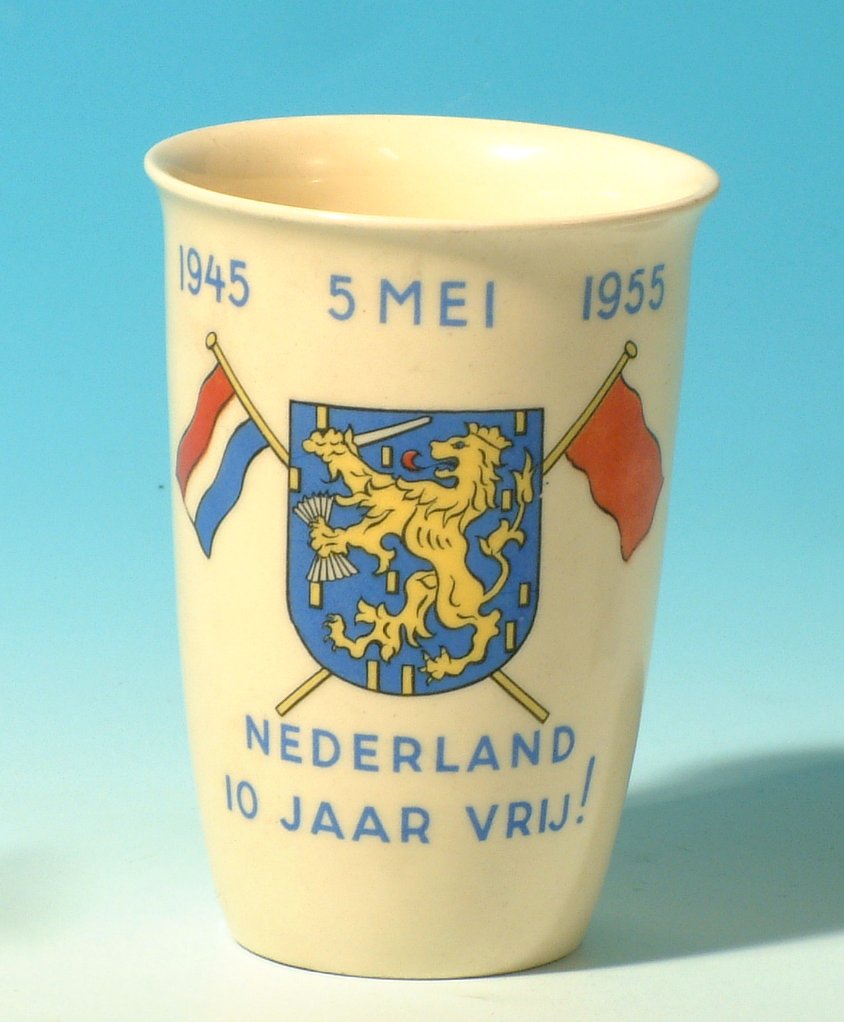Beker ter herinnering van 10-jarig bestaan van vrijheid, 5 mei 1955.