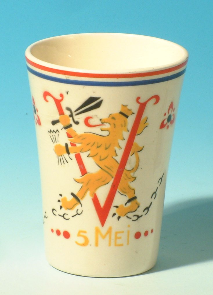 Beker, ter herinnering aan 10 jaar bevrijding, 5 mei 1945 - 1955.