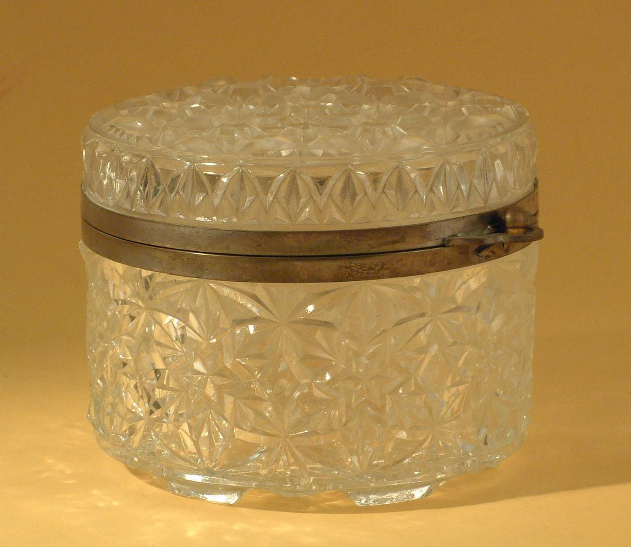 Glazen trommel met deksel, geheel in grote ruiten geslepen