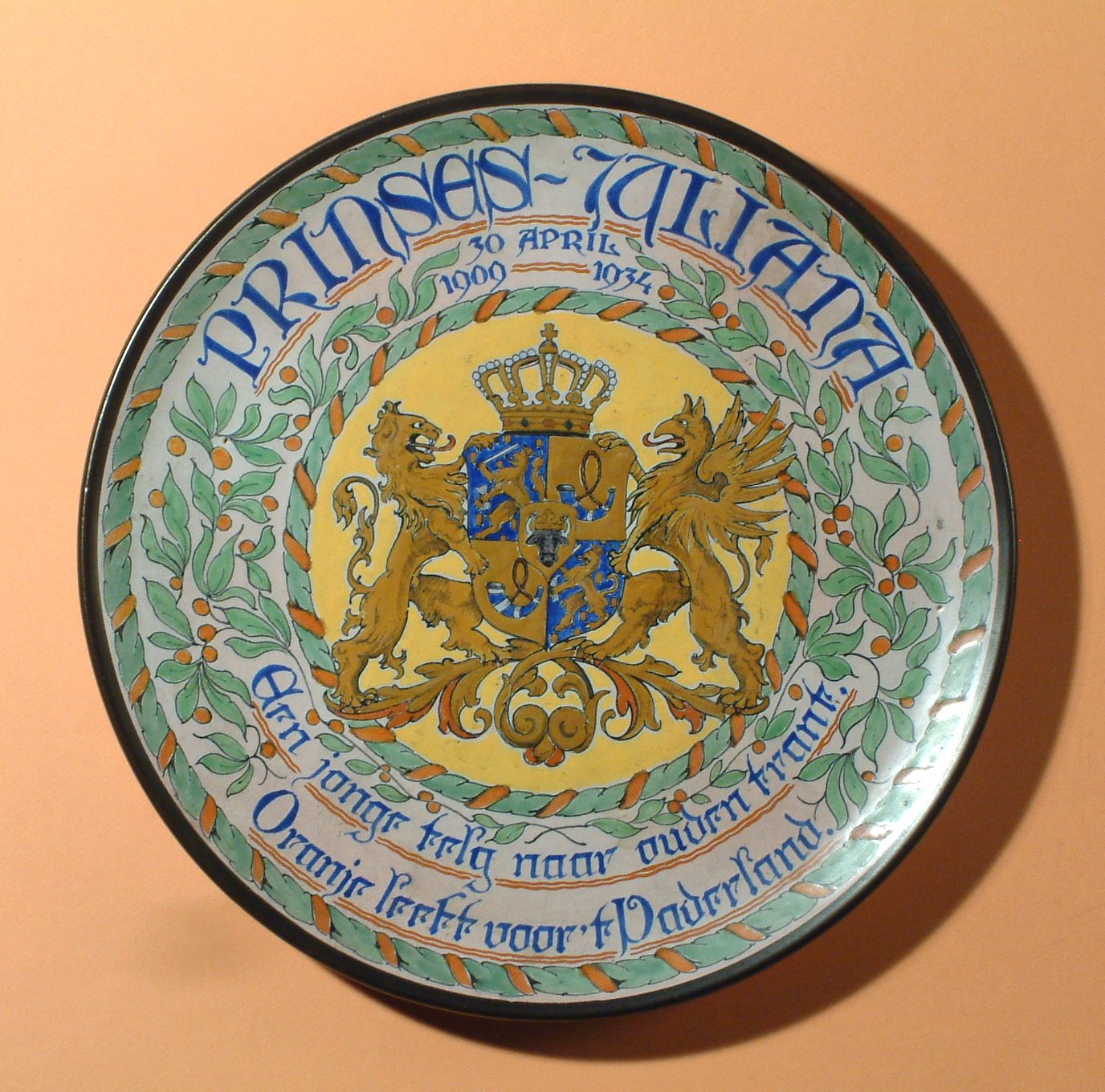 Herinneringsbord ter gelegenheid van de 25ste verjaardag van prinses Juliana