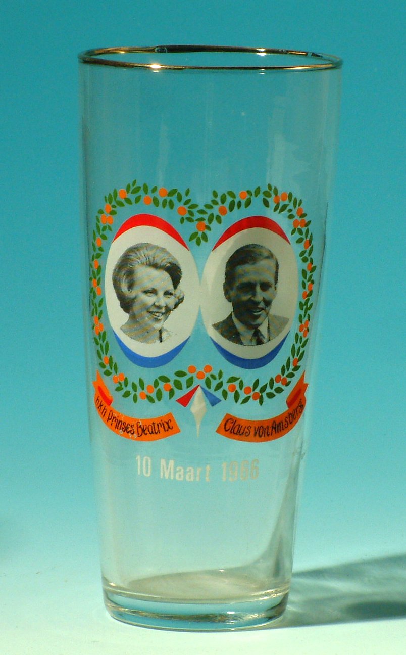 Glas ter herinnering aan huwelijk tussen Koningin Beatrix en Prins Claus, 10 maart 1966