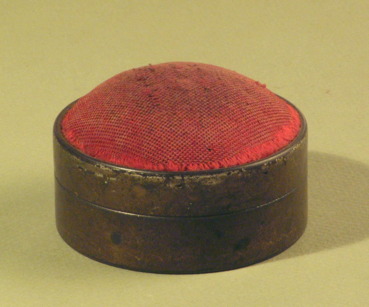 Rond, blikken speldendoosje met kussen