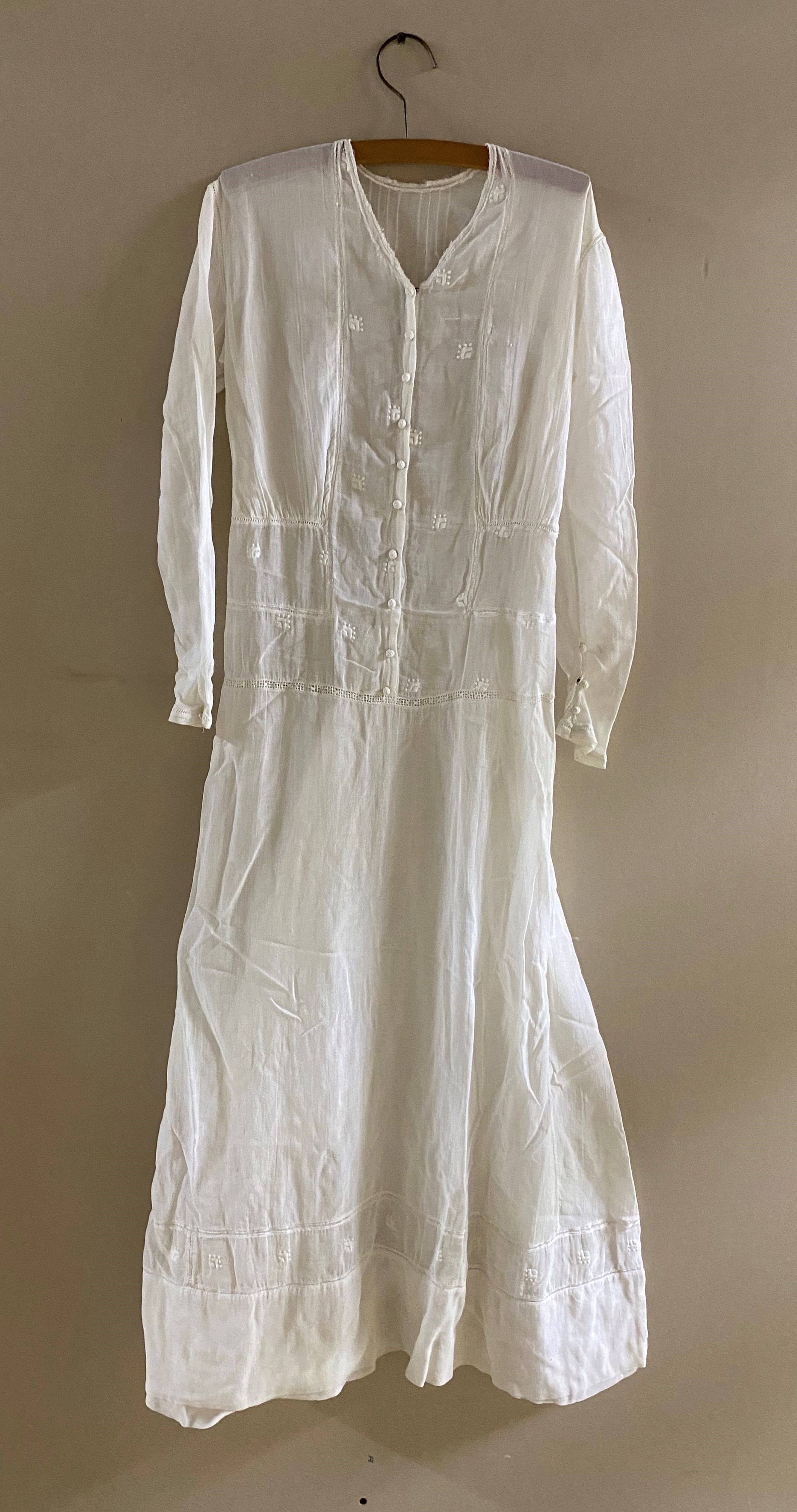 Nachtjapon van wit batist met haakwerk, 19e/20e eeuw.
