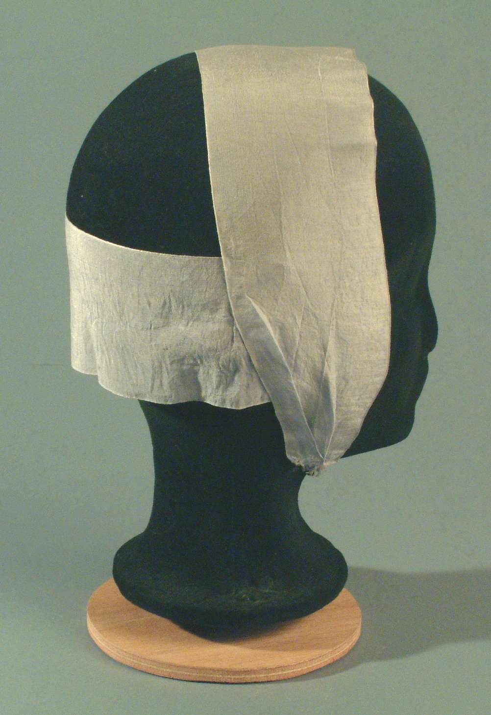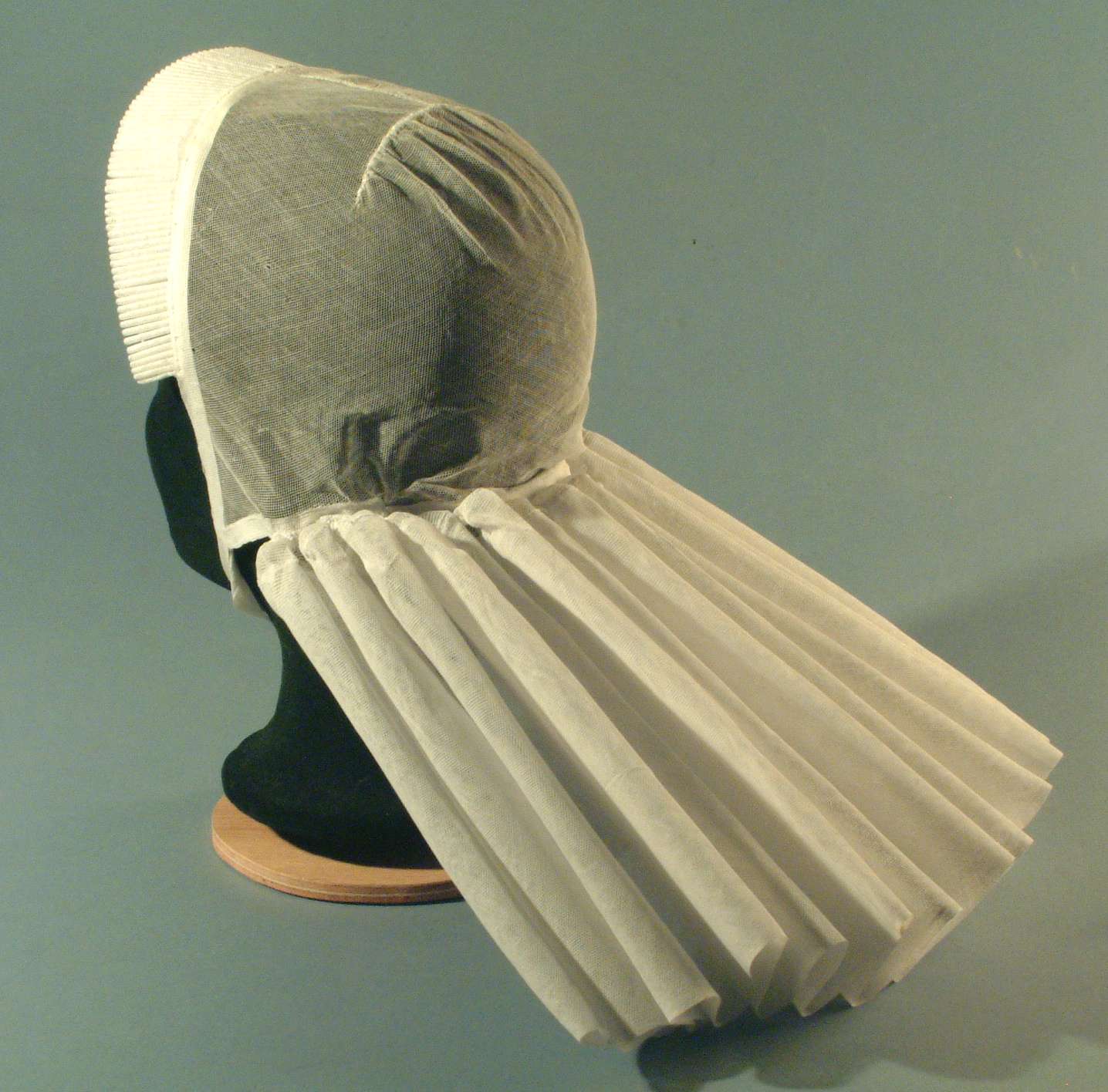 Cornetmuts met losse blauwe linten