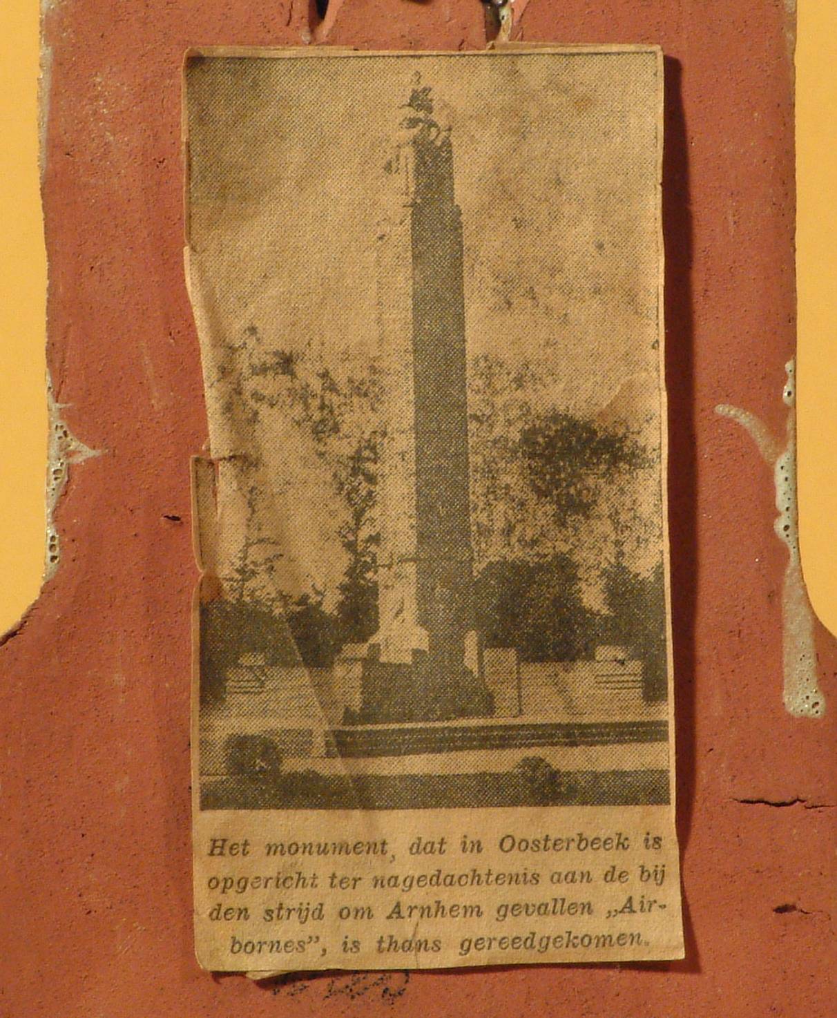 Tegel ter herinnering aan de gevallenen bij de strijd om Arnhem.
