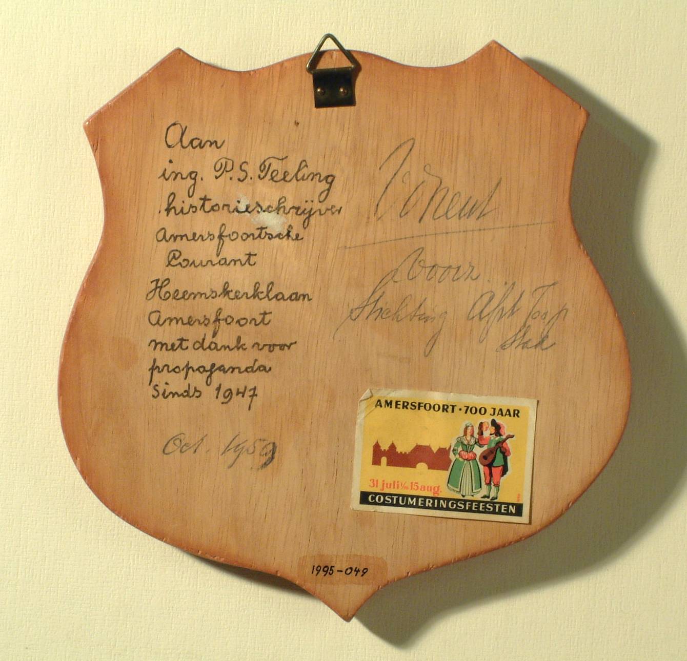 Plaquette ter herinnering aan 700-jarig bestaan van de stad Amersfoort, 1959.