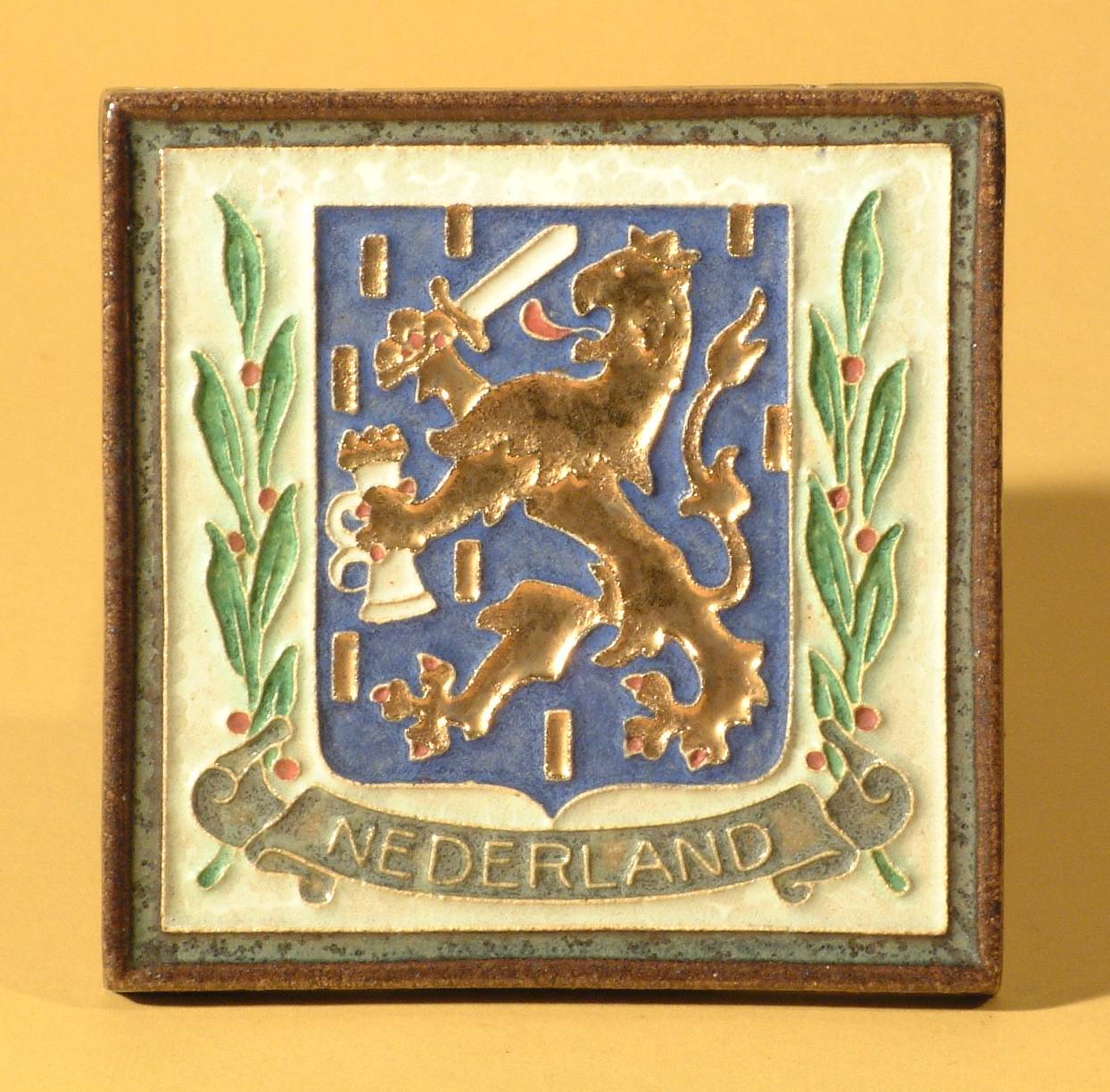Tegel met Nederlands wapen.