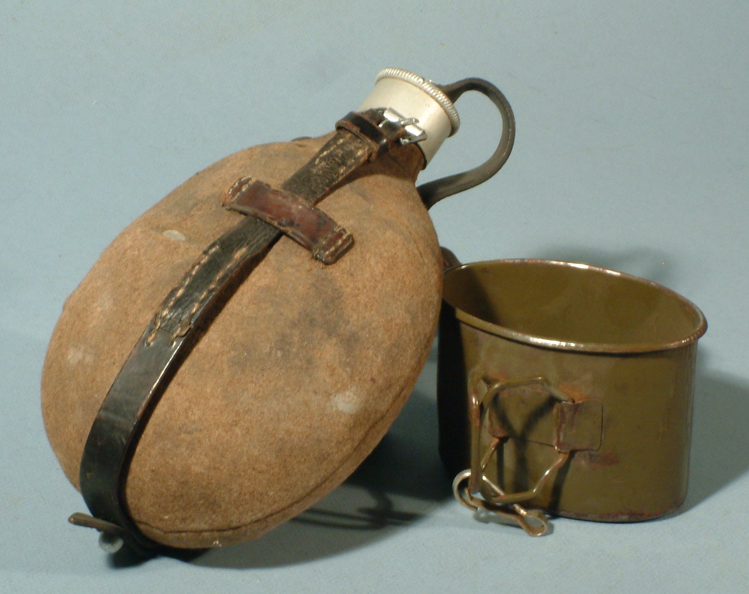 Veldfles, groen, met vilt bekleed.