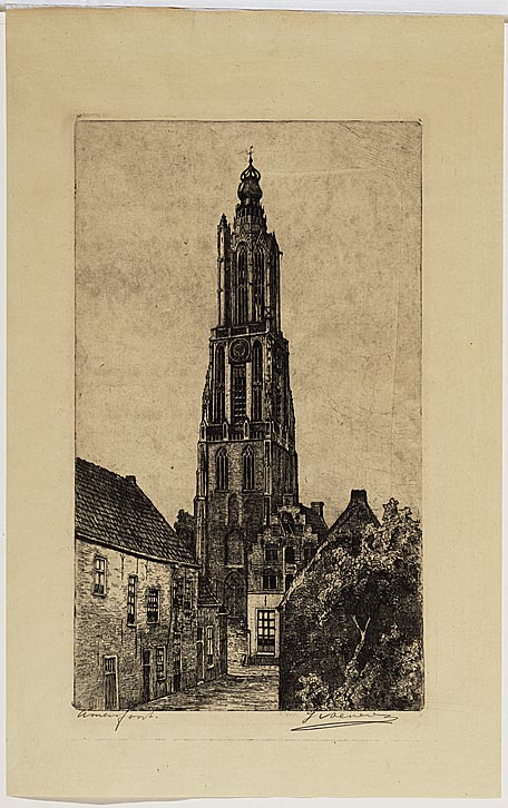 Onze Lieve Vrouwetoren vanuit de Zwanehalssteeg te Amersfoort