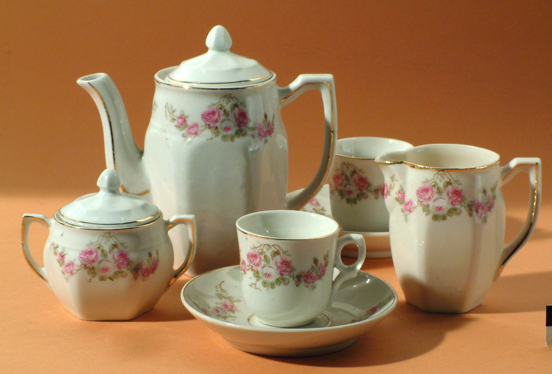 Theeserviesje met roze bloemdecoratie
