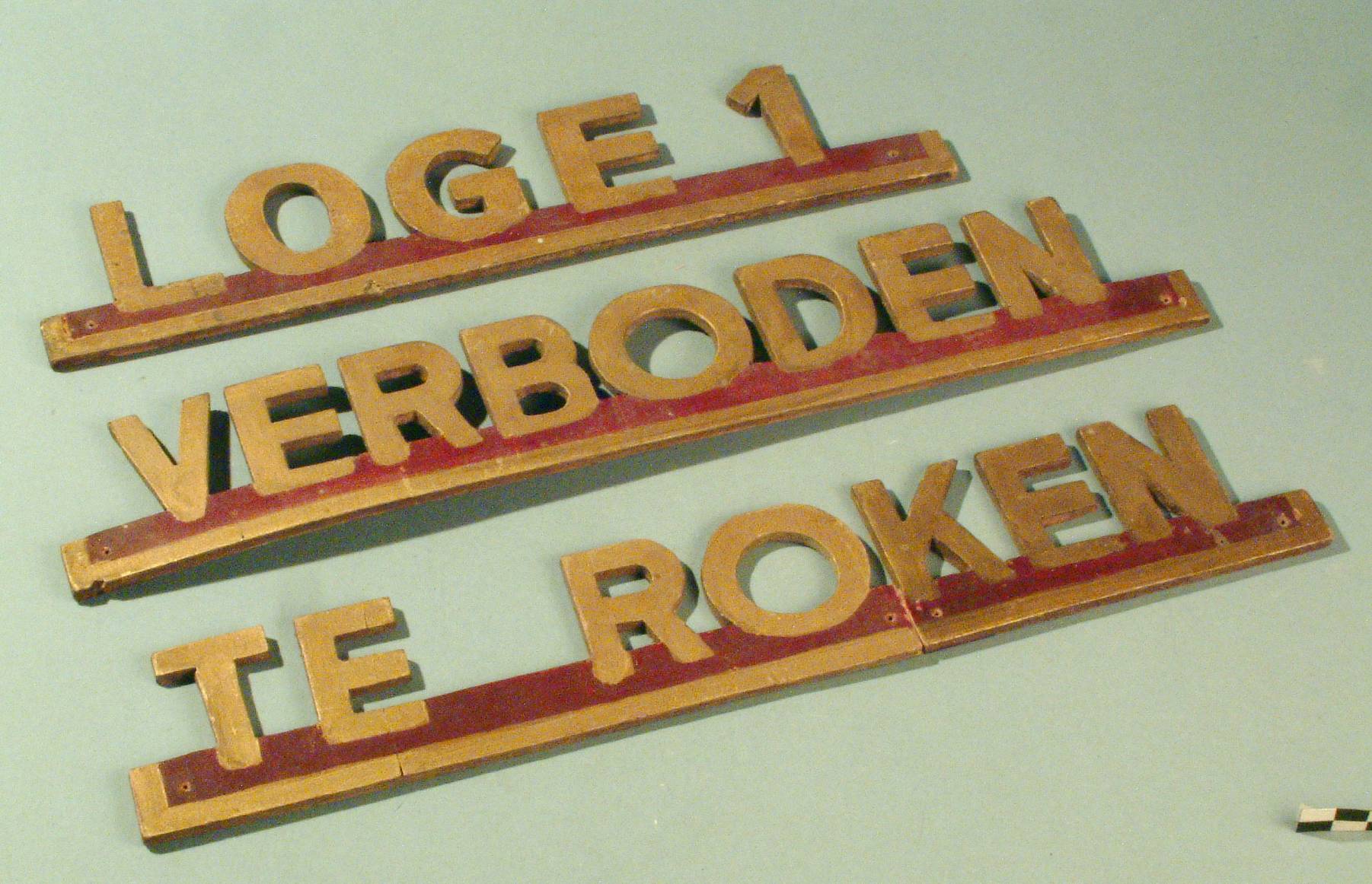 Tekstbord 'Verboden te roken' uit Grand Theatre