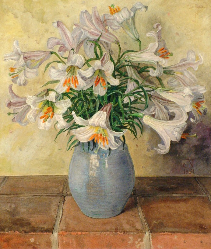 Vaas met witte lelies