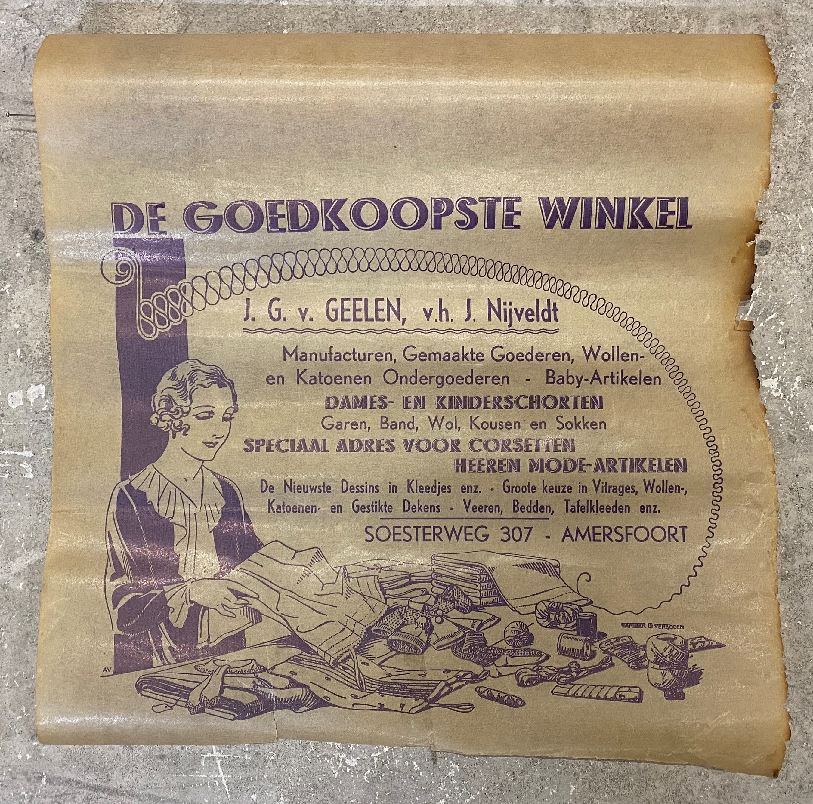 De goedkoopste winkel, J.G. v. Geelen v.h. J. Nijveldt, manufacturen mode Soesterweg 307, Amersfoort