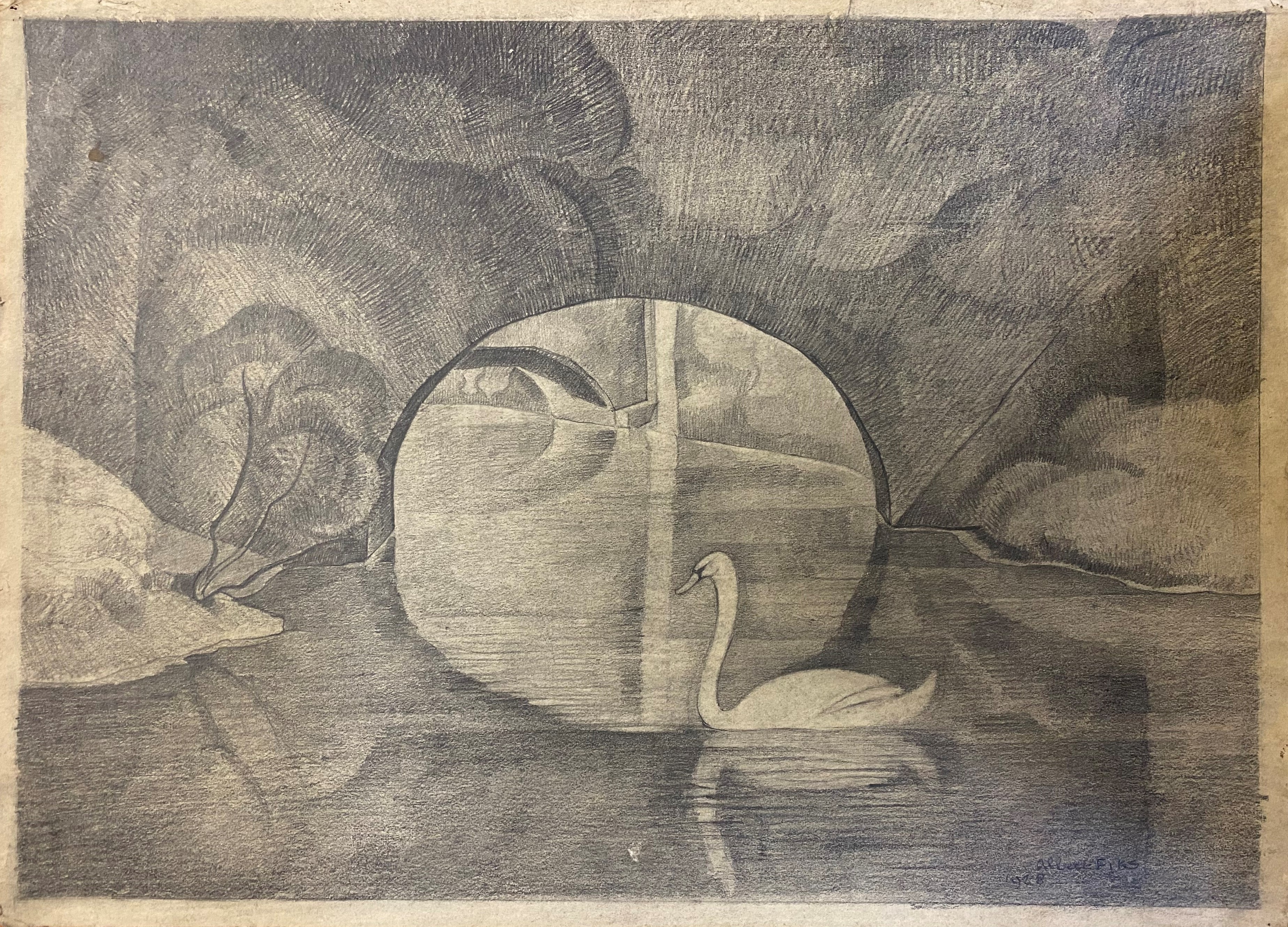 Zwaan in een maanverlicht bosmeer