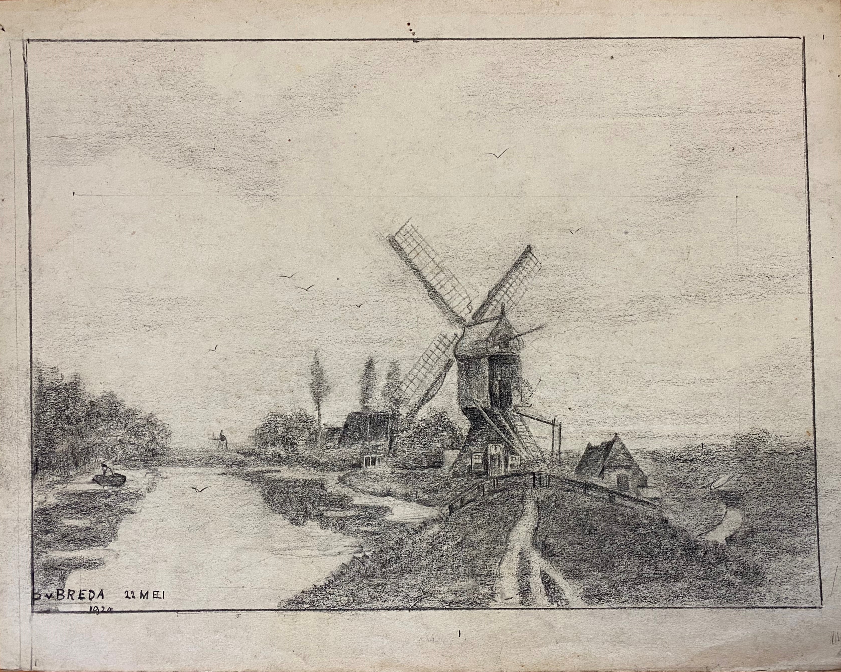 Polderlandschap met watermolen