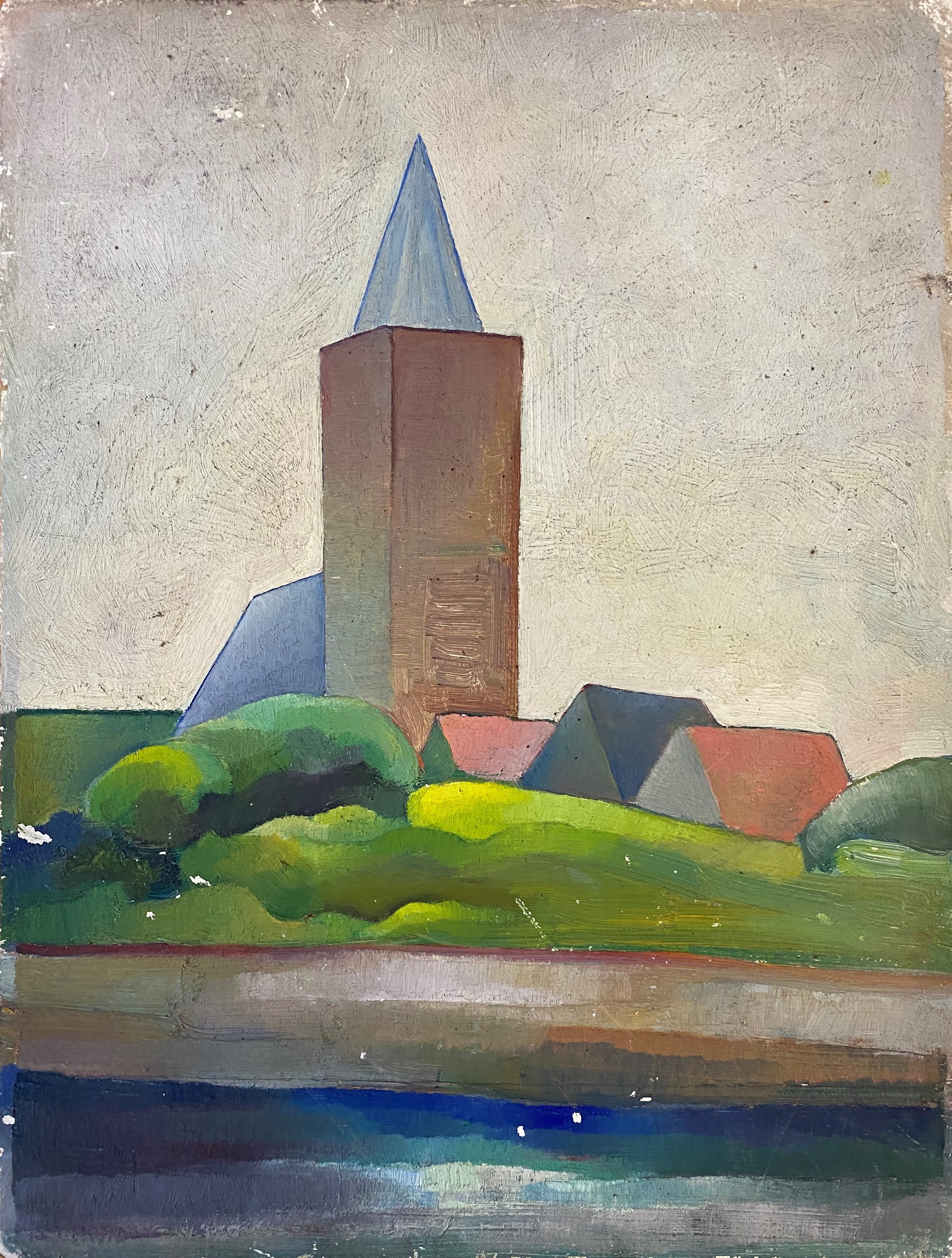 Abstract landschap met kerktoren