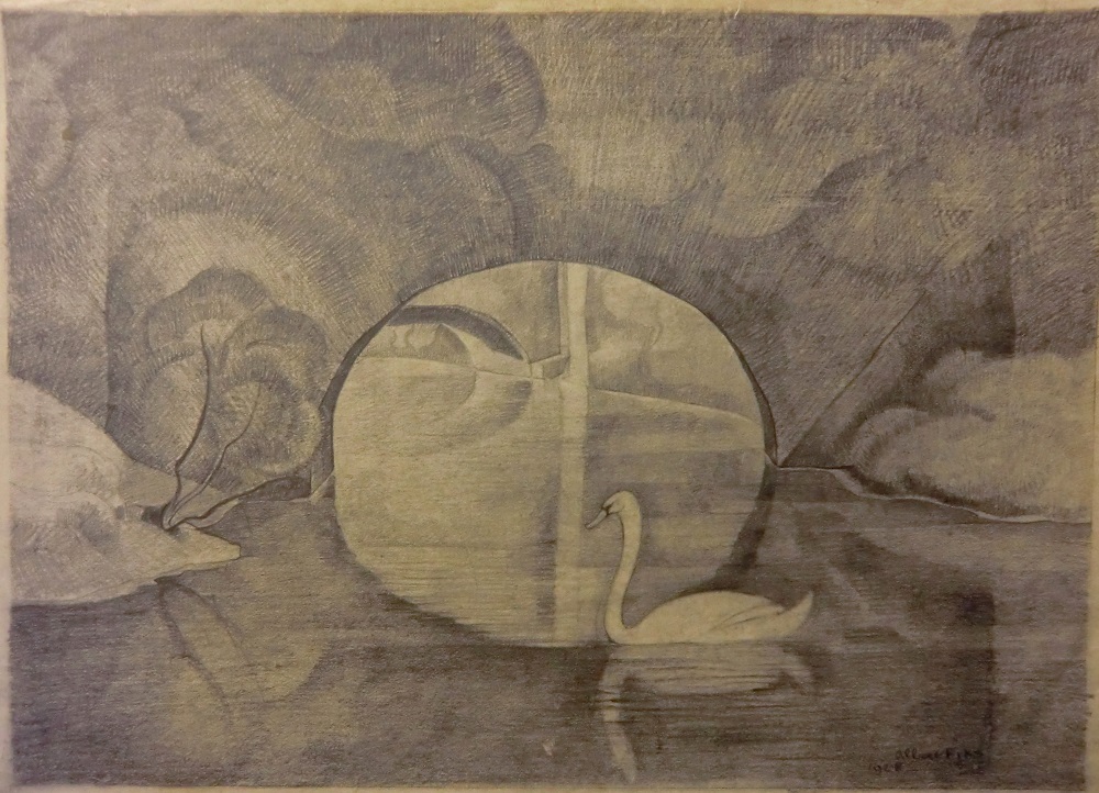 Riviergezicht met zwaan