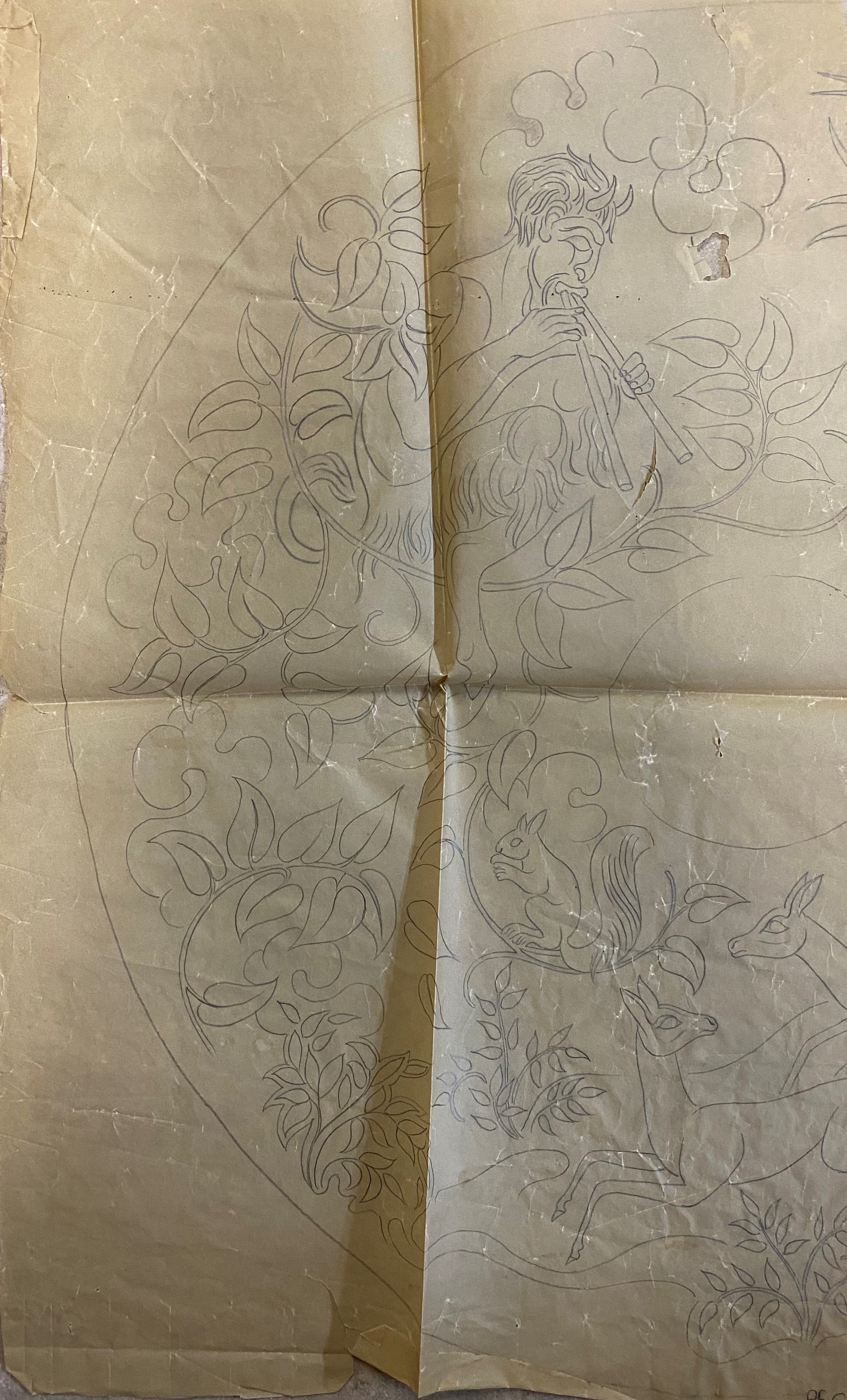 Mythologische voorstelling met Satir, eekhoorn en herten
