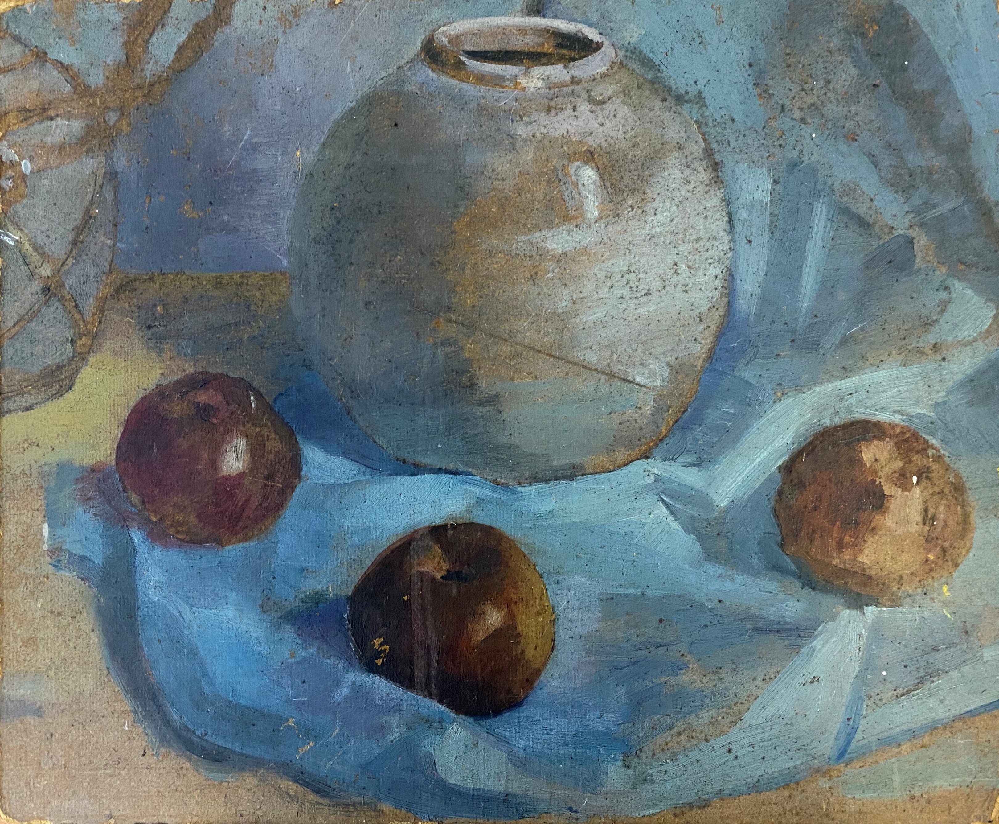 Rode pot met drie vruchten
