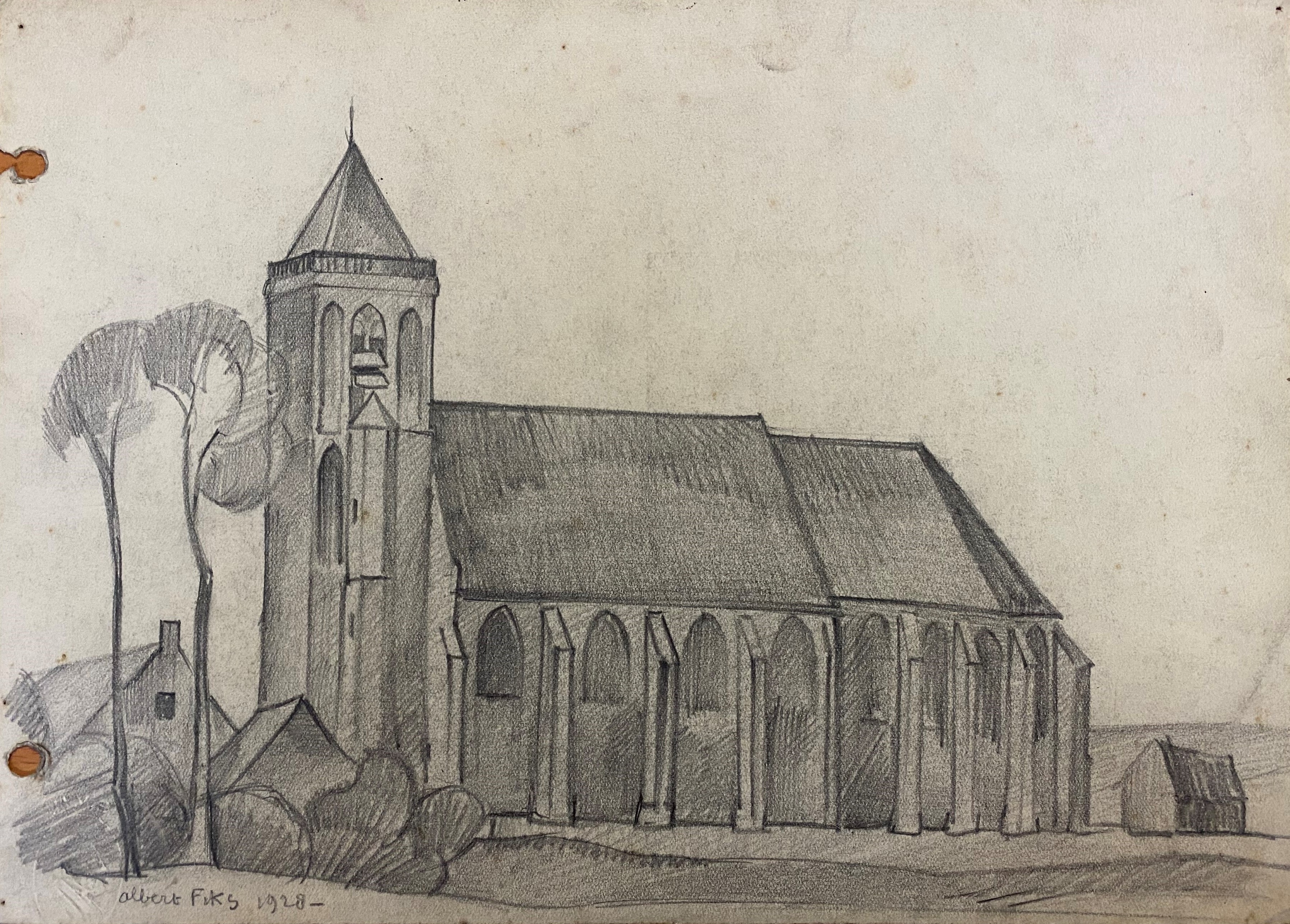 Kerk met twee bomen
