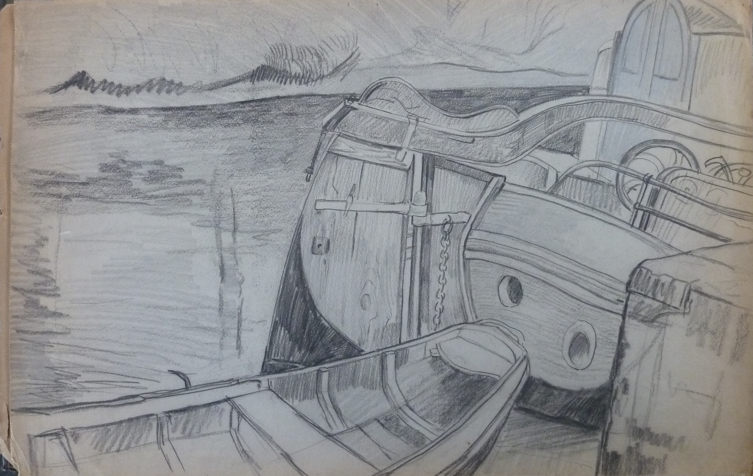 Achtersteven van een boot met sloep
