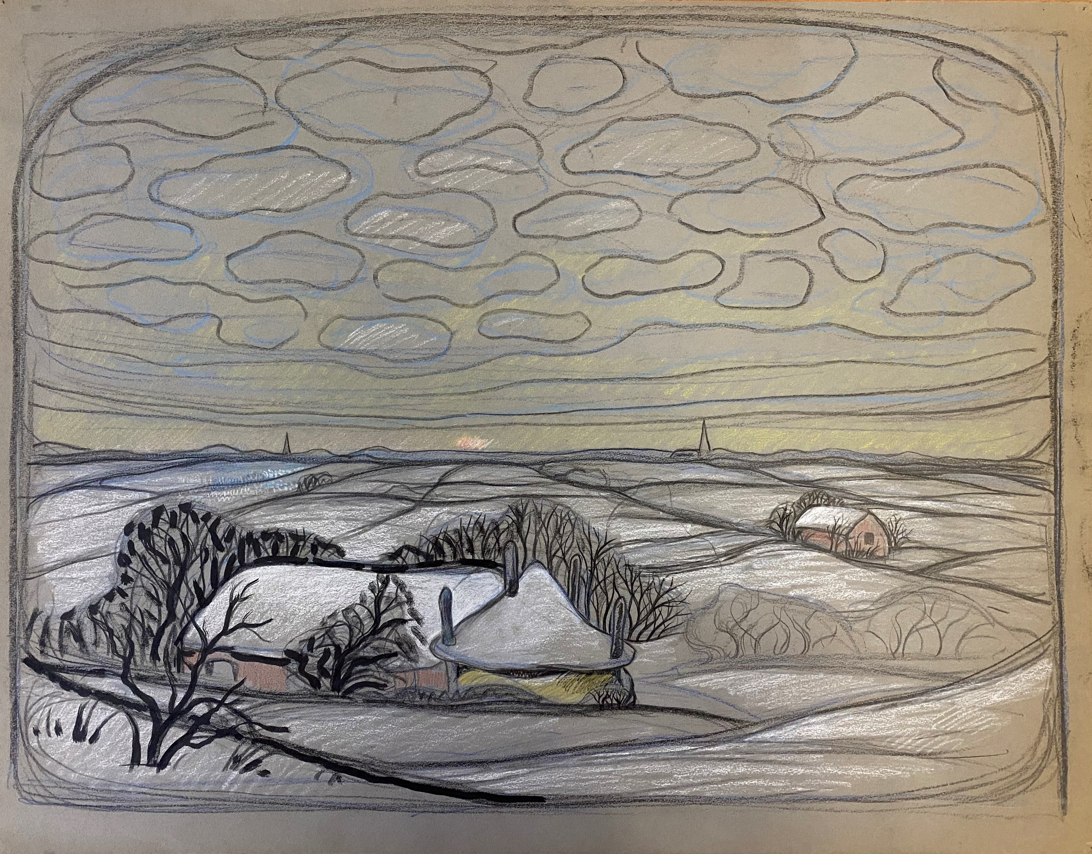Landschap met boerderij en hooimijt