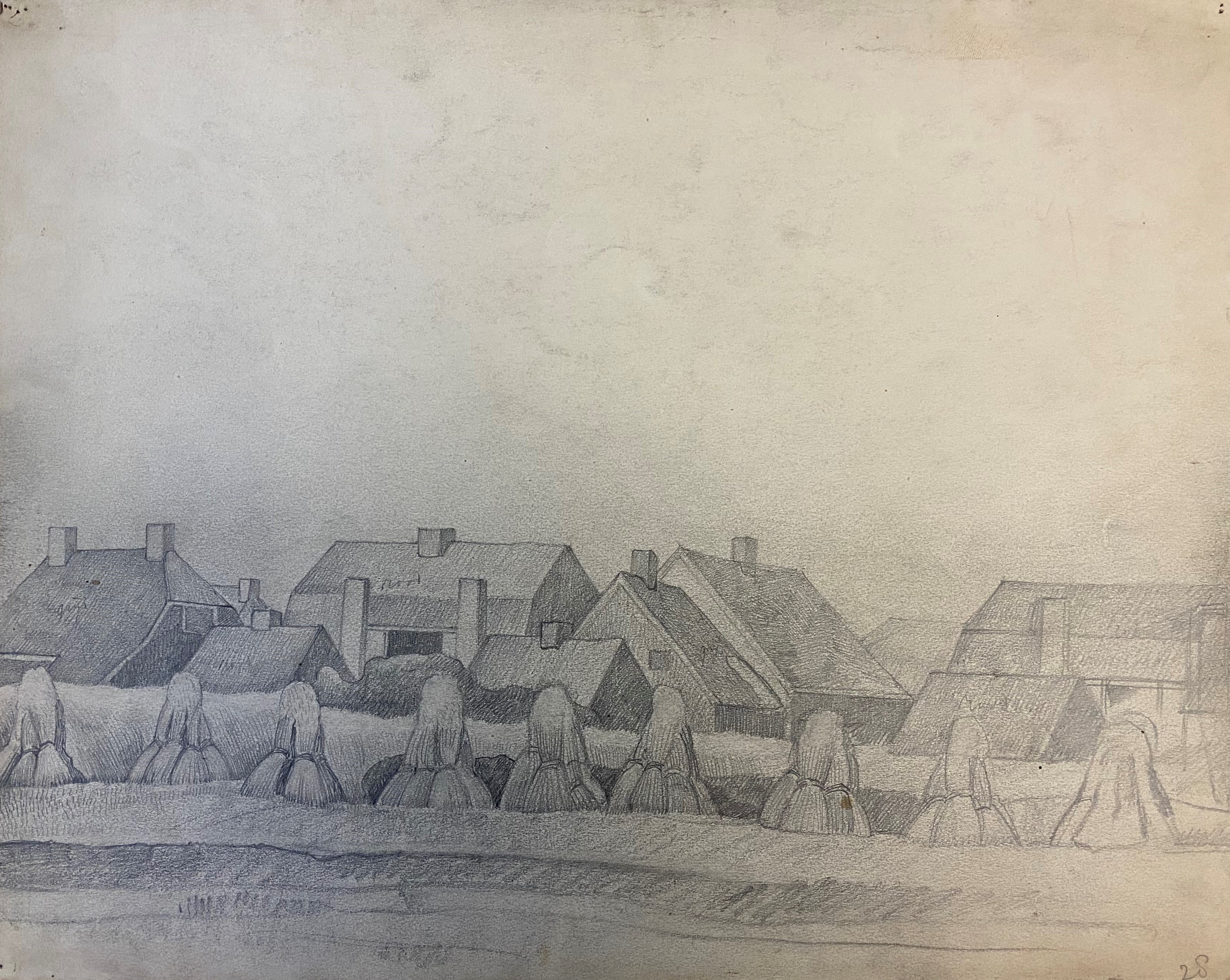 Graanakker met korenschoven